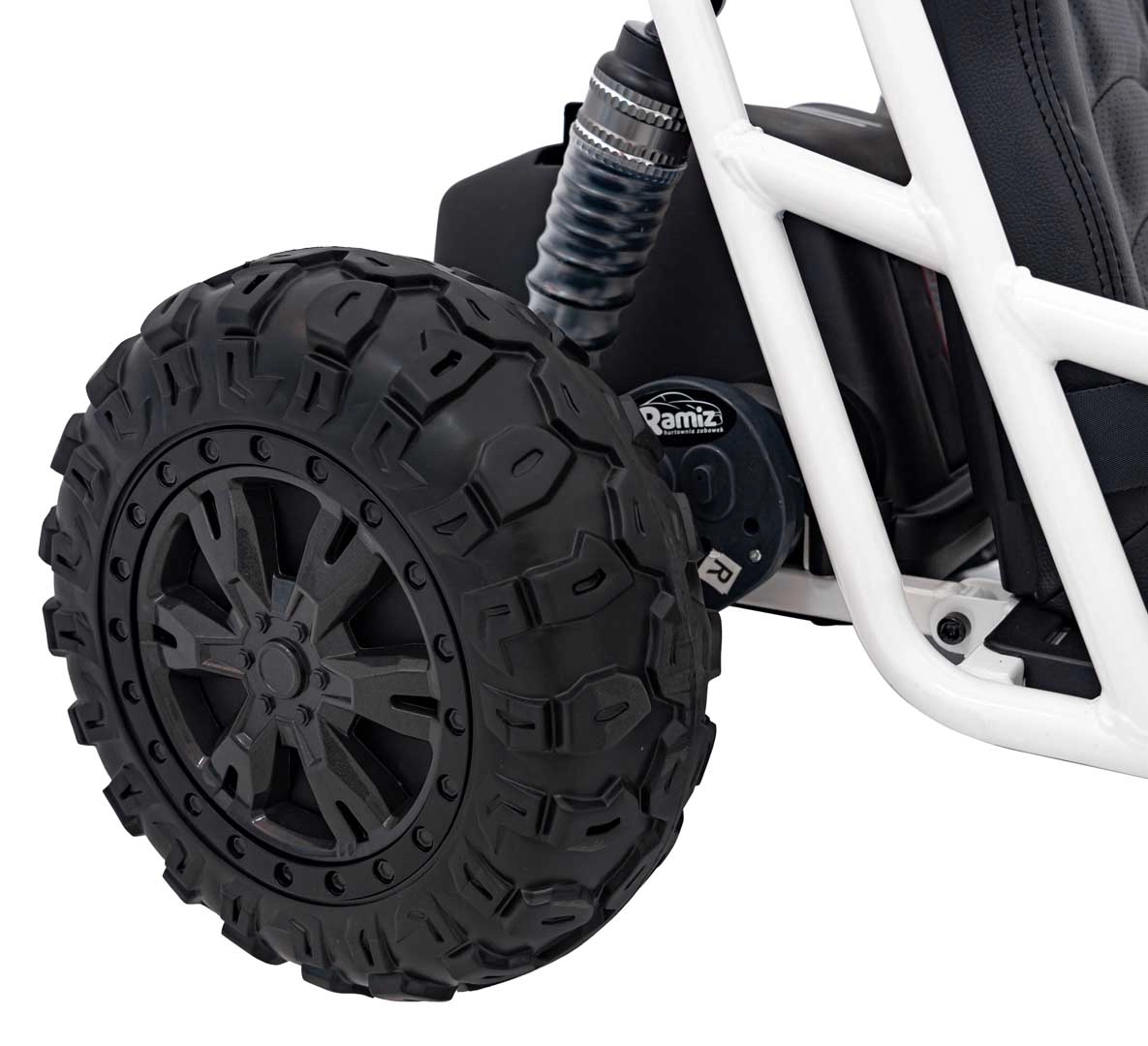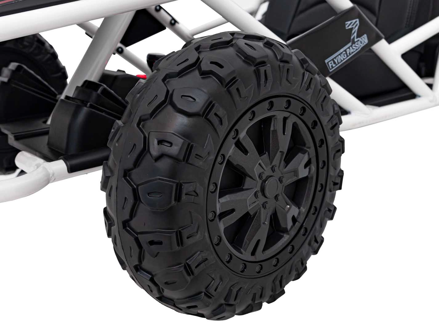 EVA-Räder und eine funktionale Federung sorgen für komfortables Fahren auch abseits des Gehwegs, sanfter Soft-Start und Sicherheitsgurt geben kleinen Fahrern zusätzliche Sicherheit. Für die Beruhigung der Eltern gibt es eine 2,4-GHz-Fernsteuerung mit Assistenzfunktion und sofortigem Stoppen. Ausstattungen wie Ledersitz, Hupe, LED-Lichter und Multimedia MP3, USB oder Bluetooth machen jedes Fahrzeug zu einem beliebten Kinderauto mit Batterie.