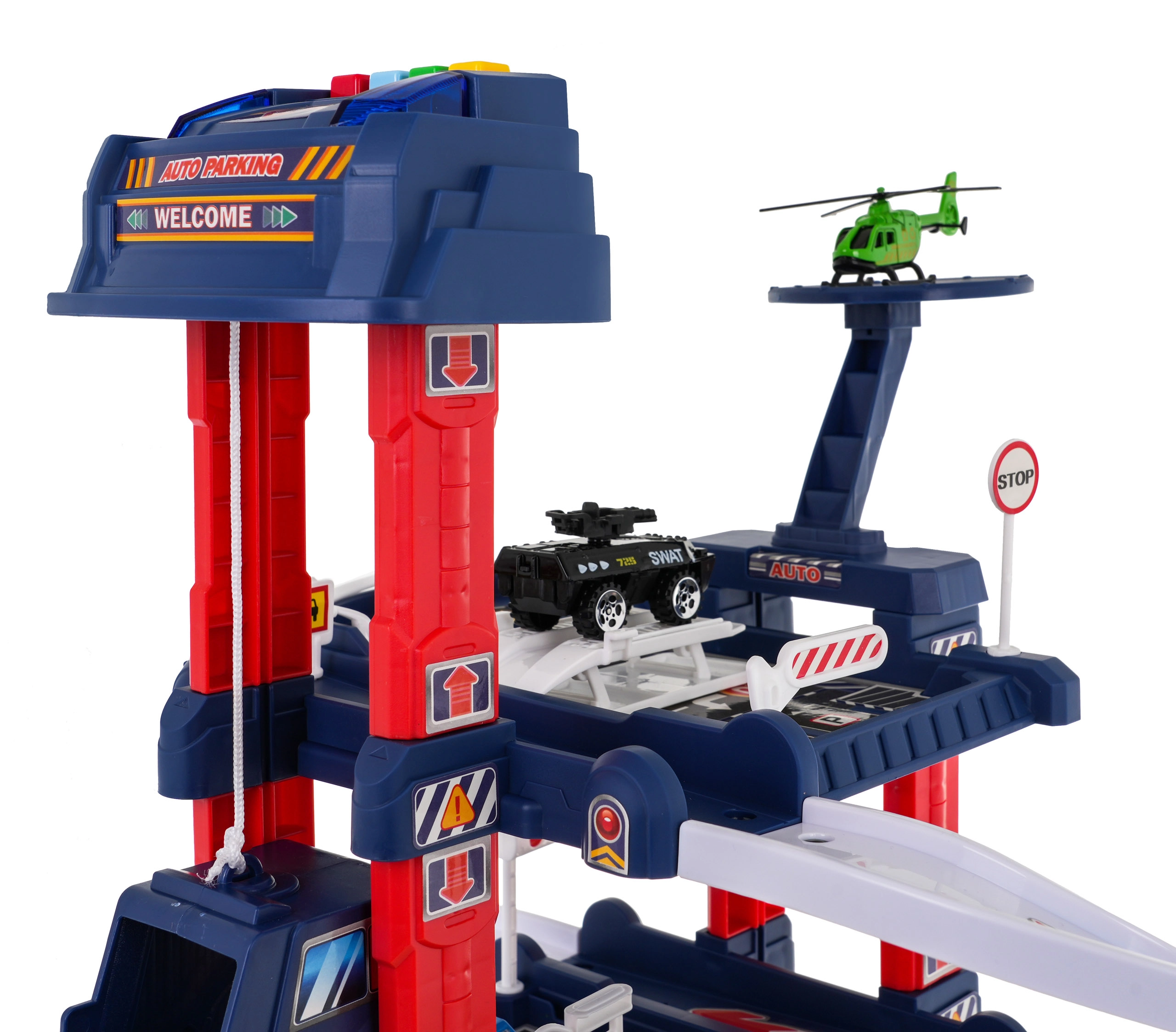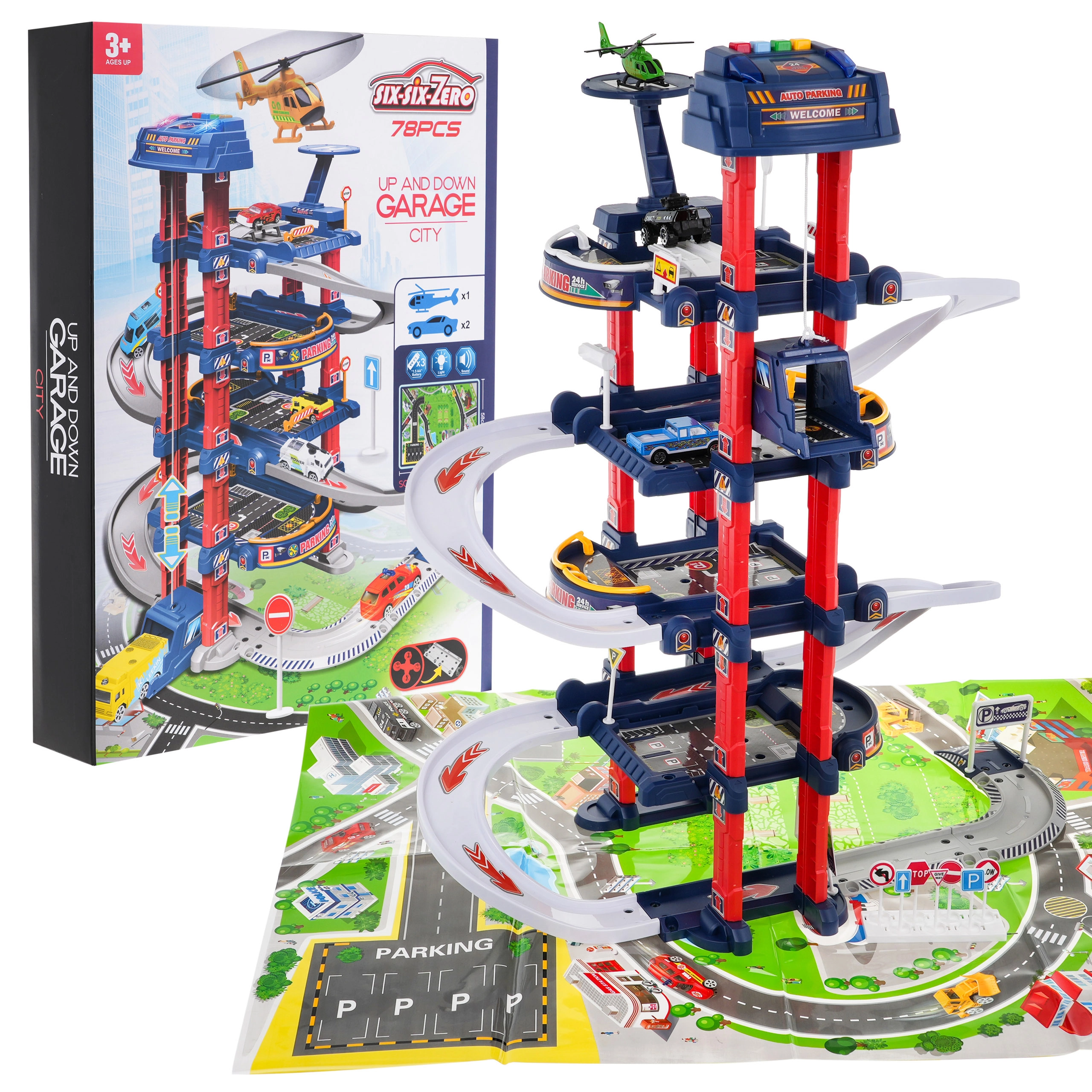 Parken Sie die Fantasie in einer mehrstöckigen Kindergarage und lassen Sie die Autos in der lebhaften Stadt zum Leben erwachen! Die Kategorie Garagen bietet Garagen für Spielzeugautos, Parkhäuser und Servicestationen mit Rampen, Aufzug, Helipad, Tankstelle und Waschanlage. Dank realistischer Details, beweglicher Aufzüge und dynamischer Abfahrten erleben Kinder endlosen Spielspaß und die Autosammlung bekommt endlich ein Zuhause.