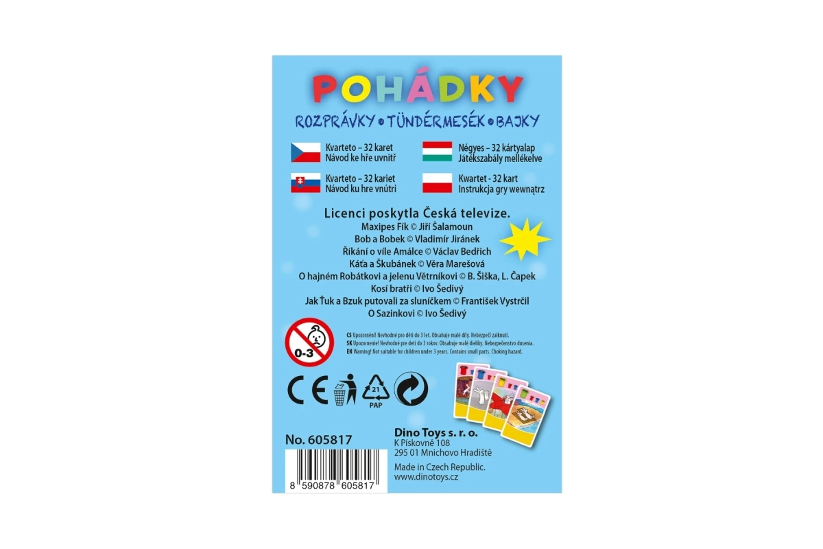 Entdecken Sie die Welt der Spiele und Puzzle der tschechischen Marke Dino, die seit Generationen begeistert. Dino Spielzeug und Dino Toys bieten Puzzle, Brettspiele sowie Klassiker wie Memo und Domino, in denen sich qualitativ hochwertige tschechische Tradition, präzise Verarbeitung und Spielspaß für die ganze Familie vereinen. Wählen Sie Kinderpuzzle von Dino, familiäre Brettspiele von Dino oder Kartenspiele mit beliebten Motiven – alles entwickelt für Freude, Förderung und gemeinsame Momente.