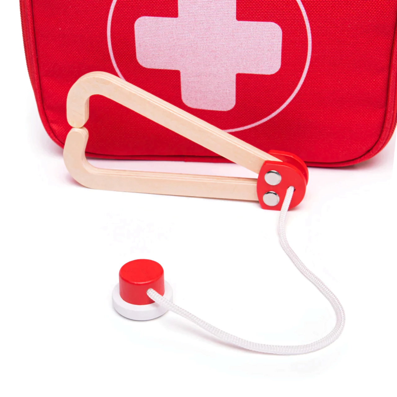 Wählen Sie aus Arztzubehör aus Holz oder Kunststoff: Kostüm und Kittel, Kinderstethoskop, Otoskop, Blutdruckmessgerät, Röntgenbilder, Patientenkarten und weiteres medizinisches Zubehör. Ein Kinder-Arztkoffer hält die Utensilien beisammen und erleichtert den Transport. Rollenspiele rund um den Beruf Ärztin/Arzt stärken Feinmotorik, Kommunikation, Empathie und Zusammenarbeit und fördern Role-Play-Szenarien voller Fantasie.