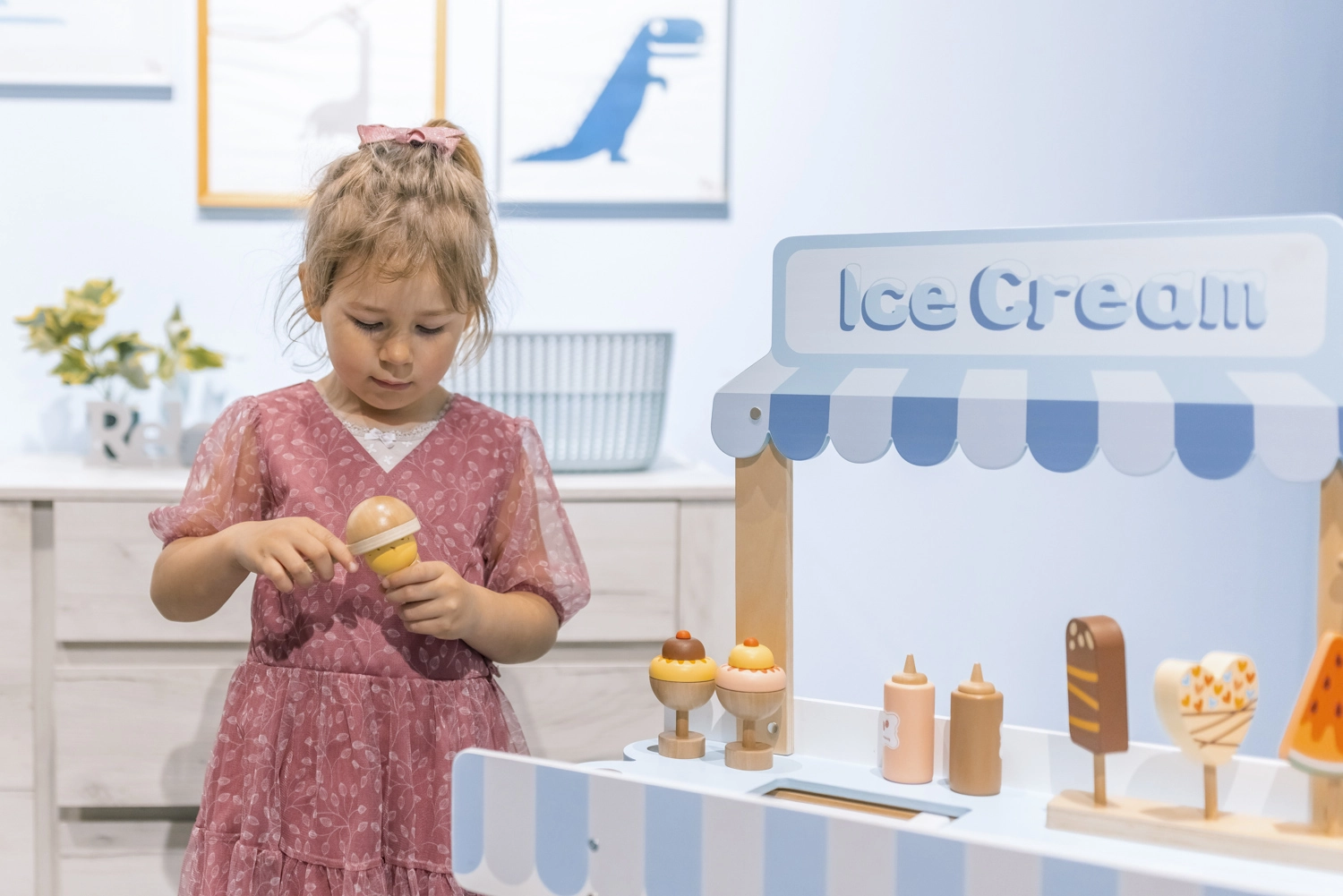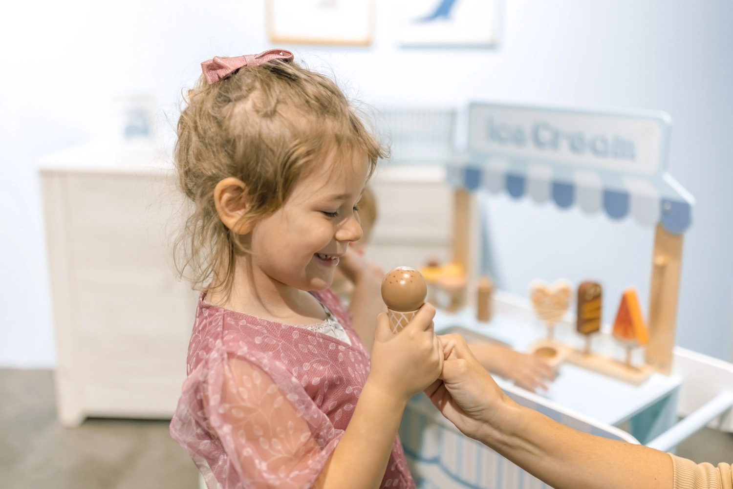 Das Spiel im Laden fördert spielerisches Lernen: Kinder üben Rechnen, entwickeln Kommunikations- und Sozialkompetenzen, trainieren die Feinmotorik und das logische Denken. Sets für Kinder ab 3+, 4+ und 5+ reichen von einfachen Theken mit Lebensmitteln bis hin zu komplexen Kassenstationen mit Touch-Kasse, Geldschublade für Scheine und Münzen, Waage, Mikrofon und Display.