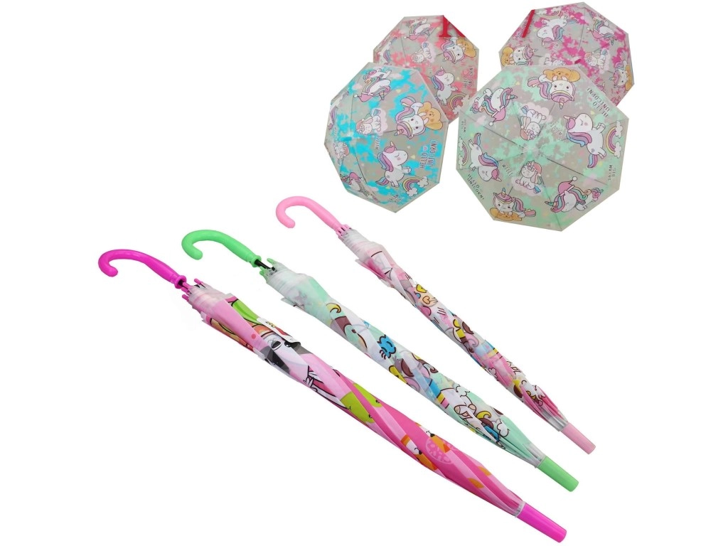 Wählen Sie einen Stock-Kinderregenschirm mit ergonomischem Hakengriff, einen transparenten Kinder-Regenschirm mit tiefer Kuppel für perfekte Sicht oder einen faltbaren Kinder-Regenschirm für den Rucksack. Alle Varianten bieten leichtes und komfortables Tragen, eine einfache und sichere Bedienung sowie bunte Motive – von Autos über Dinosaurier bis hin zu Einhörnern, einschließlich lizenzierter Prints beliebter Märchenfiguren – damit Mädchen und Jungen ihren Lieblingsschirm finden.