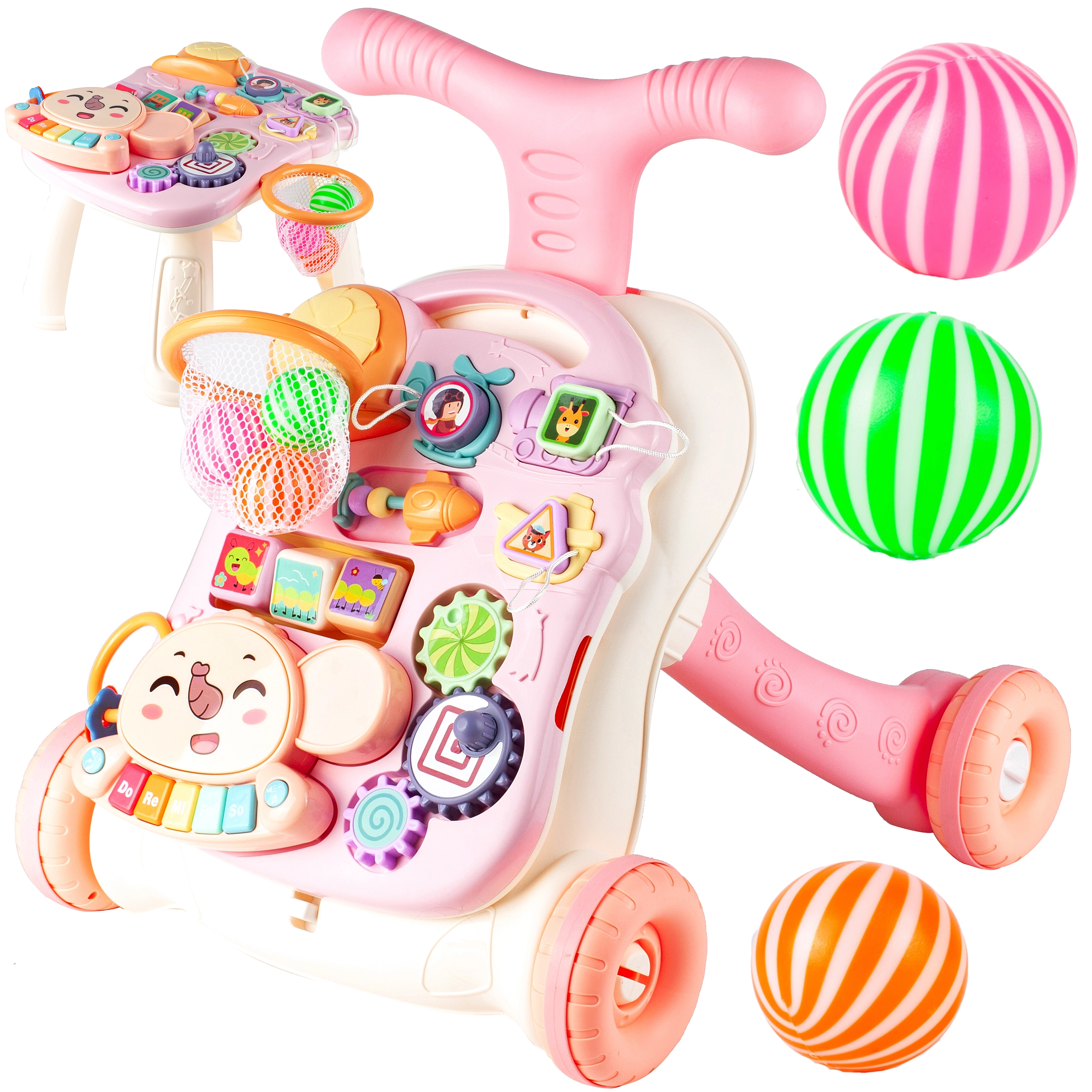 Holz-Lauflernwagen mit Montessori-Aktivitäten, Kunststoff-Modelle mit Musik- und Lichtpanel sowie multifunktionale Lauflernwagen mit Aktivitäten (Tasten, Formen, Steckspiele, Zahnräder) unterstützen die sensomotorische Entwicklung. Leise Räder schonen den Boden, gummierte Reifen dämpfen Stöße und die Möglichkeit, die Radgeschwindigkeit einzustellen, passt das Lerntempo an. Lauflernwagen für Kinder eignen sich für den Innen- und Außenbereich und fördern Selbstständigkeit, die Entwicklung der Motorik und spielerisches Lernen.