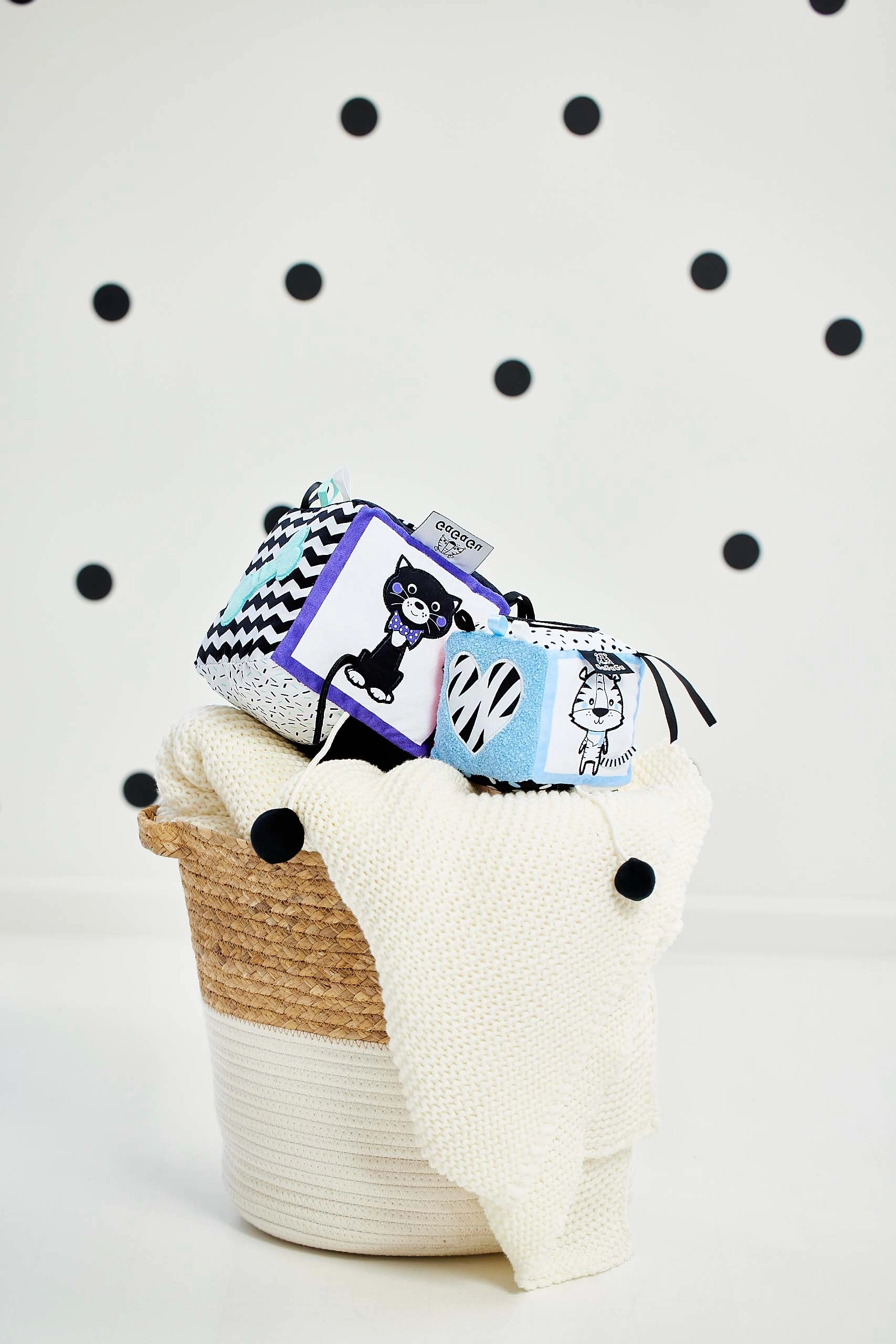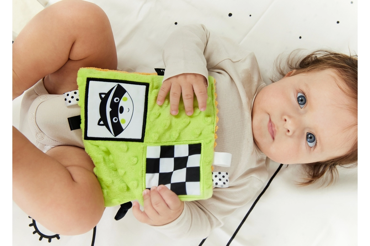 Beliebte Varianten sind Schmusetücher und Kuschelfreunde zum Trösten, Stoffbücher und Leporellos für die ersten „Lese“-Momente, Rasseln und Knisterspielzeug mit Quietsche, Aktiv-Würfel sowie Hängespielzeuge für Kinderwagen oder Bettchen. Verschiedene Texturen, schwarz-weiße Kontrastmuster sowie sicher eingenähte Etiketten und Knoten laden zum Tasten ein und fördern die Sinnesentwicklung, die Feinmotorik und die Hand-Auge-Koordination – ganz im Sinne der Montessori-Inspiration. Textilspielzeug ist leicht, kompakt und oft pflegeleicht waschbar, sodass es stets sauber und spielbereit ist. Hochwertige Nähte, feste Kanten und eine weiche Füllung sorgen für Qualitätsverarbeitung und lange Lebensdauer, während sanfte Farben und kuschelweiche Materialien Komfort beim Spielen und Einschlafen bieten. Stoffspielzeug für die Kleinsten ist die perfekte Wahl für Kinderwagen, Bettchen und unterwegs und zudem ein beliebtes Geschenk zur Geburt.