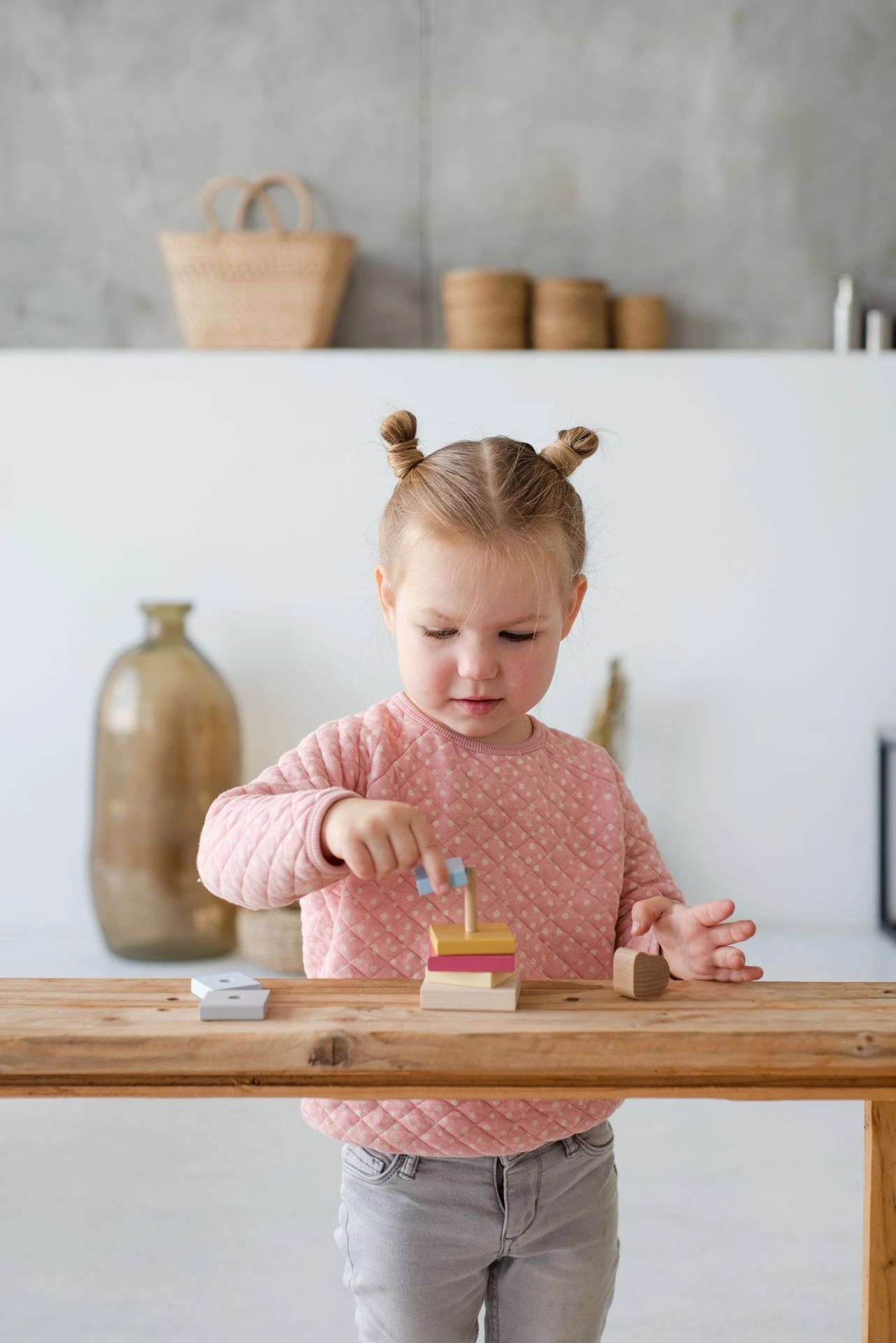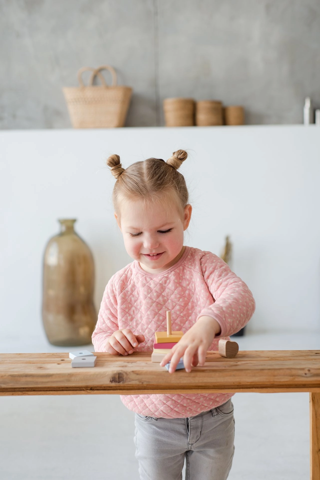 Entdeckt clevere Steckspiele und Puzzles sowie Sortier- und Einlege-Spiele, die Konzentration, räumliches Vorstellungsvermögen und Geduld trainieren. Für die gezielte Förderung von Fähigkeiten probiert Montessori-Spielzeug mit Elementen zum Sortieren, Auffädeln und Zählen. Geschichtenerzähler freuen sich über Eisenbahnen und Autos – Schienen, Lokomotiven und Fahrzeuge, die kreatives und fantasievolles Spiel anregen.