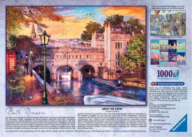 Genießen Sie ruhige Momente mit dem stilvollen Motiv der Kurort-Romantik. Die Marke RAVENSBURGER ist bekannt für perfekt passende Teile, satte Farben und widerstandsfähiges Material – so wird das Puzzeln vom ersten bis zum letzten Stück flüssig und unterhaltsam.