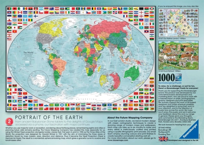 Dieses hochwertige Puzzle mit dem Motiv einer bunten Weltkarte bietet nicht nur Unterhaltung, sondern auch Wissen. Dank des präzisen Drucks und des stabilen Kartons von RAVENSBURGER können Sie sich auf lange Haltbarkeit und perfekte Passgenauigkeit verlassen. Ideal für ruhige Abende, Familienmomente oder als Dekoration nach dem Verkleben.