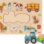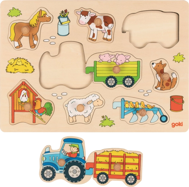 Dieses hochwertige Holz-Steckpuzzle mit Traktor auf dem Bauernhof ist eine hervorragende Wahl für die ersten Puzzles. Neun stabile Teile mit Holz-Griffknöpfen erleichtern das Greifen für kleine Kinderfinger und unterstützen die natürliche Fähigkeitentwicklung.