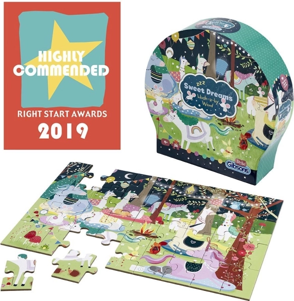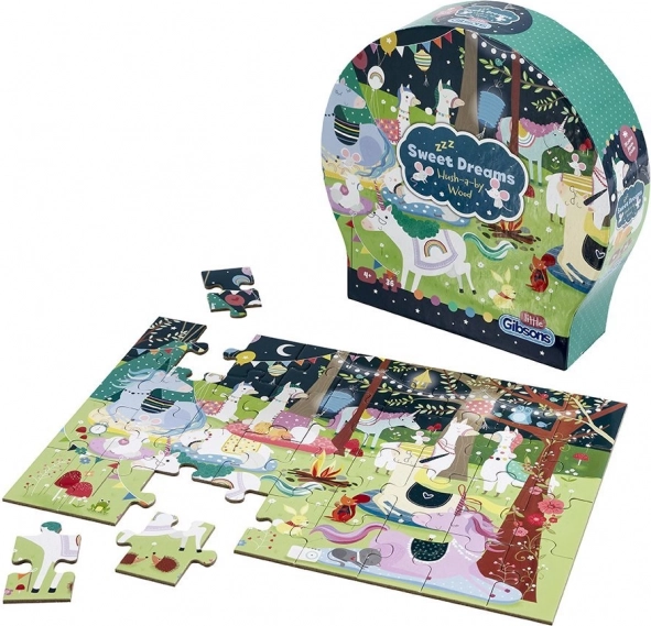Puzzle Süße Träume mit 36 Teilen bietet eine magische Reise in die Traumwelt voller Lamas und Einhörner. Ideal zur Anregung des Gedächtnisses und zur Entwicklung der kindlichen Vorstellungskraft.