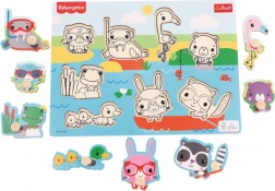 Dank der bunten Umrisse auf der Grundplatte können Kinder leicht den richtigen Platz für das Tier finden, was sie zu begeisterten Entdeckern macht. Zu den Tieren gehören Waschbär, Flamingo und Entchen, die den Spaß noch verstärken.