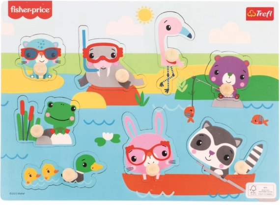 Das Holzsteckpuzzle von Fisher-Price ist ideal für kleine Kinder, die gerne spielen und gleichzeitig lernen. Es enthält acht Teile mit Griffen, die perfekt in kleine Hände passen und eine einfache Handhabung ermöglichen.