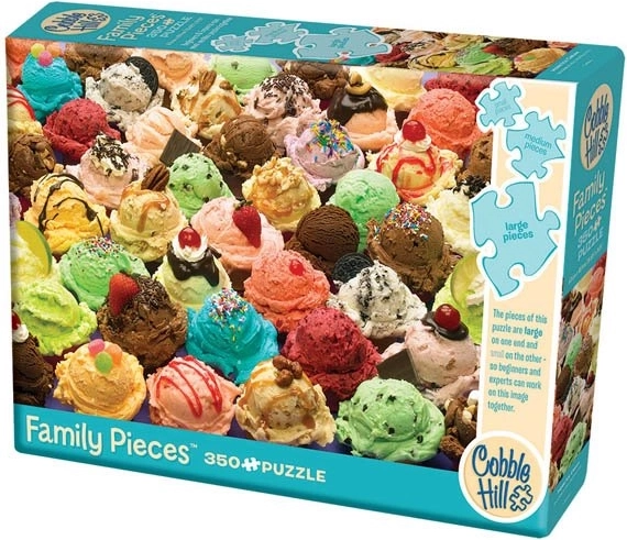 Dank der einzigartigen COBBLE-HILL-Stanzung, die nicht dem Standardraster folgt, haben die Teile ungewöhnliche Formen und versetzte Kanten, was die Schwierigkeit und den Spaß beim Puzzeln erhöht. Das fertige Bild mit dem köstlichen Eismotiv erfreut sowohl als Dekoration als auch als gemeinsames Familienerlebnis.
