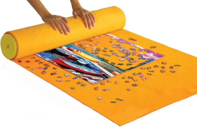 Diese gelbe rollbare Puzzleunterlage ist ideal für Puzzleliebhaber, die ihre unvollendeten Werke sicher aufbewahren oder transportieren möchten. Geeignet für Puzzles bis zu 2000 Teilen.