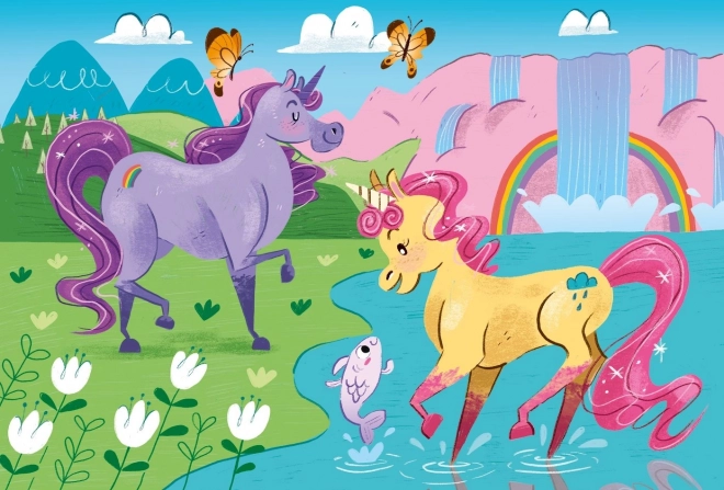 Entdecken Sie die zauberhafte Welt der Einhörner mit dem Set aus zwei CLEMENTONI-Kinderpuzzles. Jedes Puzzle mit 20 Teilen gehört zur Reihe Brilliant mit einer speziellen Glanzbeschichtung mit Diamant-Effekt, die den Bildern einen außergewöhnlichen Schimmer verleiht. Die SuperColor-Kollektion sorgt für intensive und langanhaltende Farben sowie einen präzisen Druck für ein perfektes Ergebnis.