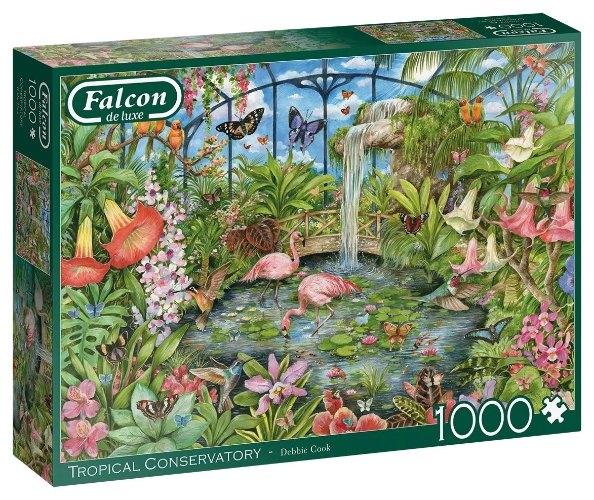 Erleben Sie stundenlange Unterhaltung und Erholung mit dem Premium-Puzzle FALCON, das ein farbenfrohes tropisches Gewächshaus zeigt. Ein Motiv voller Pflanzen, Blüten und feiner Details bietet großartige visuelle Freude und zugleich eine Herausforderung für Puzzleliebhaber.