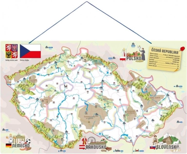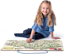 Die magnetische Karte der Tschechischen Republik von WOODY ist ein ideales Hilfsmittel zur Förderung der geografischen Kenntnisse von Kindern. Dank der magnetischen Teile, die die einzelnen Kreise und ihre charakteristischen Merkmale zeigen, lernen Kinder, sich auf der Karte zu orientieren, angrenzende Regionen zu erkennen und sich die Kreisstädte zu merken. Eine dünne rote Linie grenzt die Bereiche exakt ab, was das Zusammensetzen erleichtert und die richtige Zuordnung festigt.