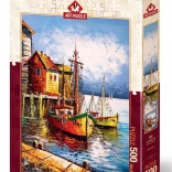 Genießen Sie ein hochwertig verarbeitetes Puzzle mit dem Motiv eines in Orange gehaltenen Hafens. Dank 500 Teilen eignet es sich hervorragend für einen gemütlichen Abend oder als Geschenk für Puzzleliebhaber. Nach dem Vollenden entsteht ein dekoratives Bild mit den Maßen ca. 34 × 48 cm.