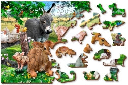 Das Holzpuzzle von WOODEN CITY bietet nicht nur endlosen Spaß, sondern auch ein ästhetisches Erlebnis dank speziell geformter Teile. Teile in Form von Tieren und Gegenständen sind mit Details ausgestattet, die durch Laserschnitt erstellt wurden und auch als kleine Figuren dienen können. Dank des beidseitigen Designs können Sie das Puzzle entweder nach dem Bild auf der einen Seite oder dem Muster der Formen auf der anderen Seite anordnen. Dieses Konzept bietet nicht nur höheren Schwierigkeitsgrad, sondern fördert auch Problemlösung und räumliche Wahrnehmung.