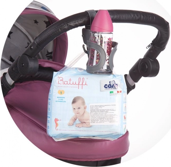 Genießen Sie bequeme Spaziergänge ohne Kompromisse. Der universelle CHIPOLINO-Getränkehalter vereint eine 2-in-1-Lösung – einen festen Halter für Becher oder Flasche und einen praktischen Haken zum Aufhängen einer Tasche oder von Zubehör. Dank der universellen Befestigung lässt er sich leicht an den meisten Kinderwagen, Dreirädern und weiterem Kinderzubehör anbringen.
