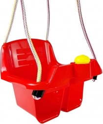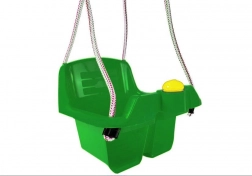 Sichere Eimer-Schaukel für die Kleinsten mit tiefem Sitz, hoher Rückenlehne und vorderer Schutzbügel für stabiles Sitzen. Strapazierfähiger Kunststoff mit robustem Aufhängeseil eignet sich für Innen- und Außenbereich. Inklusive spaßigem Knopf/Hupe, der kleine Kinder begeistert.