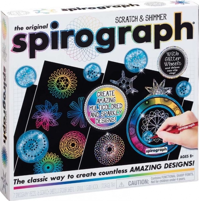Kreatives Spirograph-Set, mit dem Sie unzählige, farbenfrohe Mandalas gestalten können. Im Set Scratch&Shimmer werden die Mandalas mit einem Kunststoff-Gravierstift herausgekratzt. Wählen Sie einfach zwischen Regenbogen- und Glitzerpapier. Der Packungsinhalt umfasst: