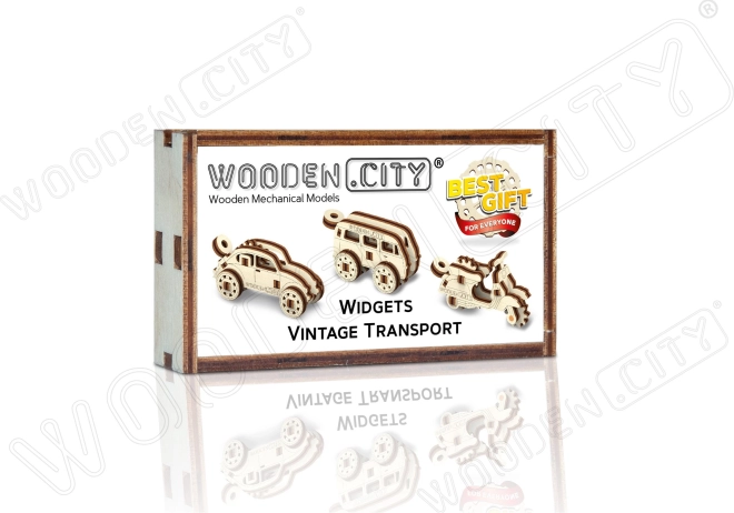 Gestalten Sie Ihr eigenes Stück Geschichte mit den WOODEN CITY 3D-Holzpuzzles. Dieses Widgets-Set bietet drei Miniaturen von Verkehrsmitteln, die als Anhänger oder Dekoration verwendet werden können. Jedes Modell ist ein Unikat, das Sie mit seinen ausgearbeiteten Details und seiner Funktionalität unterhält und begeistert.