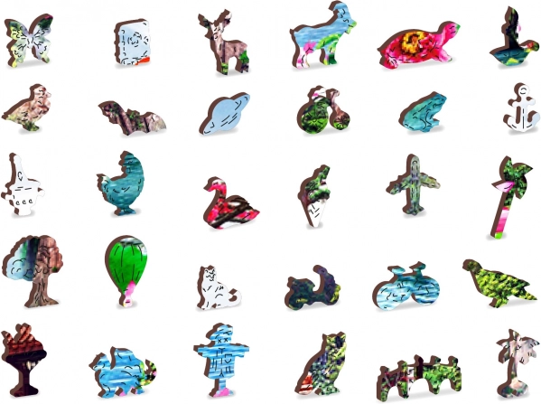 Jedes der 2000 Teile ist lasergeschnitten und viele von ihnen haben die Form von Tieren, Gebäuden oder anderen Objekten, wodurch die einzelnen Teile einzigartig sind und die Fantasie sowie Kreativität von Kindern fördern. Das Holzpuzzle eignet sich für alle Generationen und ist ein großartiges Geschenk.