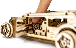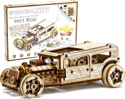 Genießen Sie den Aufbau eines realistischen Hot-Rod-Modells aus Naturholz. Dank präzisem Laserschnitt und cleveren Verriegelungen wird das Modell ohne Klebstoff und Werkzeug montiert. Der Hot Rod verfügt über drehbare Vorderräder, einen Schwungradmechanismus, öffnende Türen mit Anschlag und ein Kennzeichen wie bei einem echten Auto.