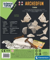 Entdecke die Welt der Paläontologie Schritt für Schritt. Mit Hammer und Meißel arbeitest du den Erdblock vorsichtig heraus und legst Knochen frei, aus denen du ein realistisches Piranha-Skelett zusammensetzt. Dank eines speziellen fluoreszierenden Materials leuchtet das Skelett im Dunkeln, nachdem es angestrahlt wurde – das verleiht der Entdeckung eine einzigartige Atmosphäre.