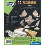 Die illustrierte Anleitung in Tschechisch (und weiteren Sprachen) führt Kinder sicher durch den gesamten Prozess und bietet spannende Informationen über Fossilien, ihre Entstehung und die Geschichte der Knochenfische vom Paläozoikum bis in die Gegenwart.