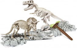 • Komplette Ausstattung: Hammer, Meißel, Ausgrabungsblock, Skelettteile von T‑Rex und Triceratops, Karten, Anleitung.