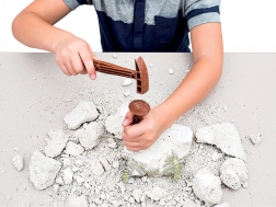 Benutze Hammer und Meißel, grabe die „Fossilien“ vorsichtig aus dem Block und setze ein detailliertes Skelett zusammen. Eine großartige Art, Geschicklichkeit und Geduld zu trainieren.