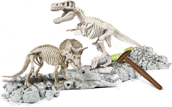 Dieses Lernset aus der Reihe Science & Play bietet ein authentisches Erlebnis paläontologischer Forschung. Im „Gesteins“‑Block findest du Teile zweier detailreicher Skelette, die du mit Hammer und Meißel vorsichtig freilegst und anschließend zu imposanten Modellen zusammensetzt. Das spezielle fluoreszierende Material nimmt Tageslicht auf und leuchtet danach im Dunkeln – für einen starken Wow‑Effekt und zusätzliche Motivation zum Entdecken.