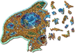Gönnen Sie sich originellen Puzzle-Spaß mit einem Holzpuzzle in Form eines Delfins, inspiriert von der Unterwasserwelt. Dank speziell geformter Teile – von denen einige Meerestieren nachempfunden sind – ist das Puzzeln visuell attraktiv und zugleich anspruchsvoller als bei klassischen Puzzles. Durch den Laser hervorgehobene Details verleihen dem Motiv Tiefe und einige Teile lassen sich als kleine Figuren aufstellen.