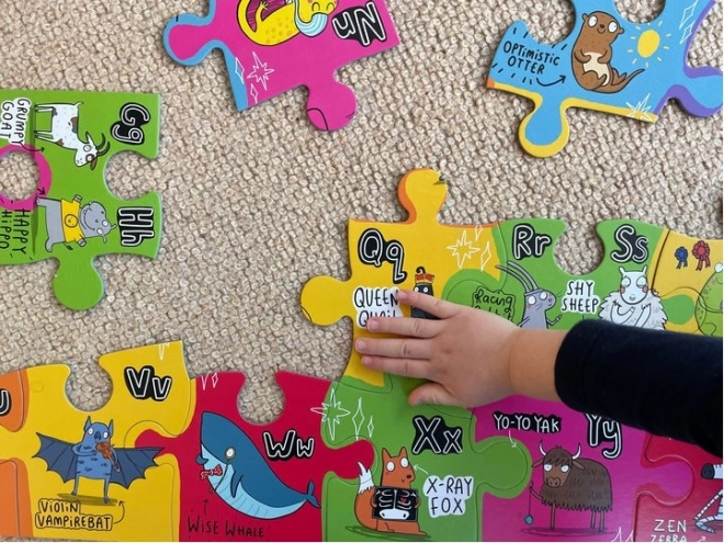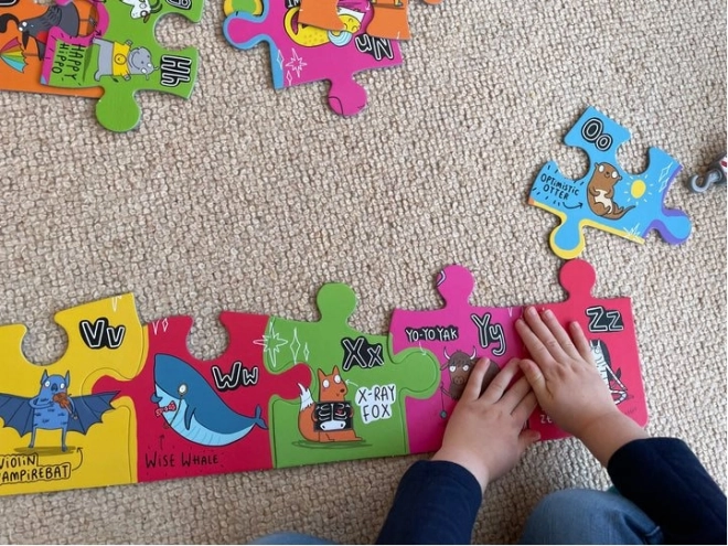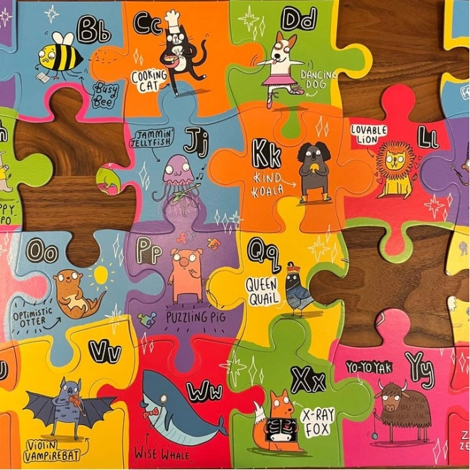 Jedes Puzzleteil zeigt eine einzigartige Tierfigur, die mit einem Buchstaben des Alphabets verknüpft ist. So werden Kinder spielerisch unterhalten und lernen gleichzeitig.