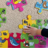 Dieses Puzzle ist darauf ausgelegt, die Feinmotorik und das Farbverständnis zu fördern. Es eignet sich als Bodenpuzzle, auf dem Kinder spielen und gleichzeitig lernen können. Das künstlerische Design macht das Entdecken neuer Wörter und Tiere besonders unterhaltsam.