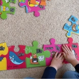 Das Puzzle unterstützt die Entwicklung der Feinmotorik und kognitiver Fähigkeiten und bietet zugleich praktisches Lernen des englischen Alphabets.