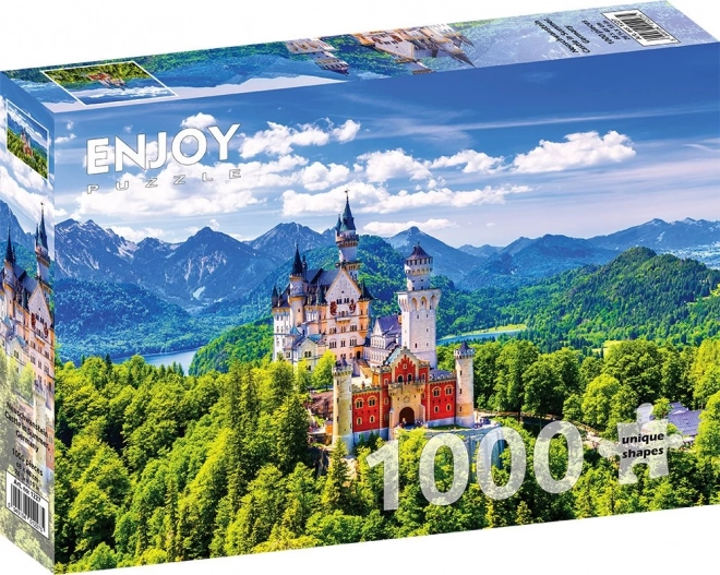 Erleben Sie einen herrlichen Blick auf das Schloss Neuschwanstein im Sommer mit diesem detaillierten Puzzle aus 1000 Teilen. Das Puzzle Schloss Neuschwanstein bietet stundenlangen Spaß und Entspannung, perfekt die Schönheit eines der märchenhaftesten Schlösser der Welt einfangend.