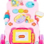 Enthalten sind eine Zeichentafel mit Stift, ein Spiegel, bunte Zahnräder, Tasten und Schlüssel mit „smarter“ Fernbedienung. Abnehmbare Spielzeuge können auch separat verwendet werden, was den Spielspaß verlängert und die Kreativität fördert. Der Lauflernwagen spielt Lichter, Melodien und Geräusche ab und stimuliert so Gehör, Sehsinn und Konzentration. Verpackt in einer Geschenkbox – eine tolle Geschenkidee.