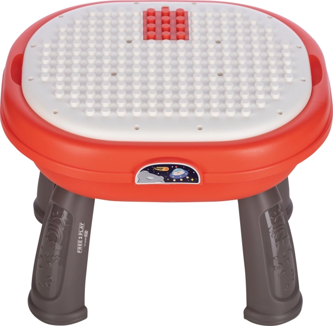 Freeon Free2Play Fun ist ein multifunktionaler interaktiver Tisch, der für freudiges Entdecken entwickelt wurde. Die Aktivierung über eine rote Taste startet fröhliche Melodien und blinkende Effekte, die Kinder zum Spielen und Erkunden motivieren. Das drehbare Spielpanel bietet auf der einen Seite interaktive Elemente, auf der anderen eine praktische Unterlage, die mit Lego-ähnlichen Bausteinen kompatibel ist.