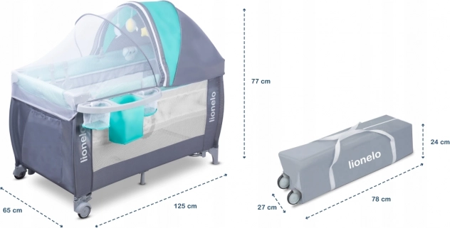 Das Reisebett LIONELO Sven Plus ist die ideale Wahl für Urlaub und Familienbesuche. Dank stabiler Standfüße und Rollen mit Bremse lässt es sich leicht verschieben und sicher fixieren. Zwei Höhenstufen der Matratze ermöglichen bequemes Ablegen sowohl von Babys als auch größeren Kindern, und der seitliche Eingang mit Reißverschluss sorgt für leichten Zugang und Spaß.
