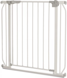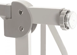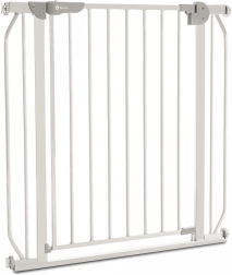 Die Selbstverriegelungsfunktion sorgt für automatisches Schließen des Gitters nach dem Öffnen, was ideal für Eltern mit voll bepackten Armen ist. Bei einer Öffnung von über 90 Grad blockiert sich das Gitter automatisch. Dank der beidseitigen Öffnung ist die Nutzung in jedem Raum komfortabel.