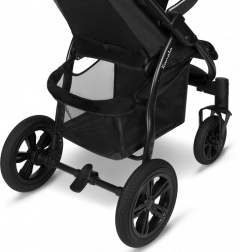 Die großen wartungsfreien Räder mit robustem Profil und vollständiger Federung meistern Kopfsteinpflaster und Unebenheiten mühelos. Für zusätzliche Kontrolle beim Fahren gibt es eine Feststellung der Vorderräder und eine zentrale Fußbremse. Dank der 9-stufigen Griffverstellung passen Sie den Kinderwagen Ihrer Körpergröße an. Sicherheit bieten 5-Punkt-Gurte mit weichen Polstern sowie reflektierende Elemente am Verdeck, am Bügel und an der Fußstütze. Der Kinderwagen erfüllt die Norm EN 1888.