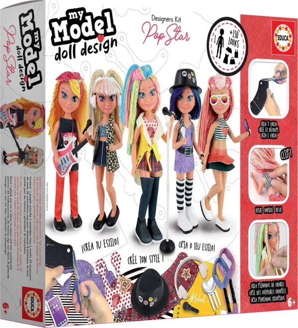 EDUCA My Model Doll Design ist eine Reihe kreativer Sets für Kinder, die speziell entwickelt wurden, um Kreativität und kindliche Fantasie zu fördern. Sie begleiten Kinder durch den Prozess der Vorstellungskraft und stärken spielerisch die Entwicklung kindlicher Fähigkeiten, logisches Denken und das Herstellen von Zusammenhängen. Mit dem Set, das alles Nötige enthält, um Kleidung im Stil eines Popstars für jedes Konzert oder jede Party zu entwerfen, werdet ihr zu großartigen Modedesignern und Stylisten.