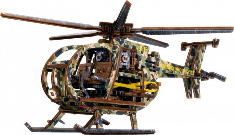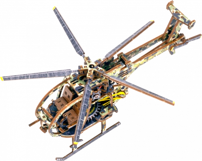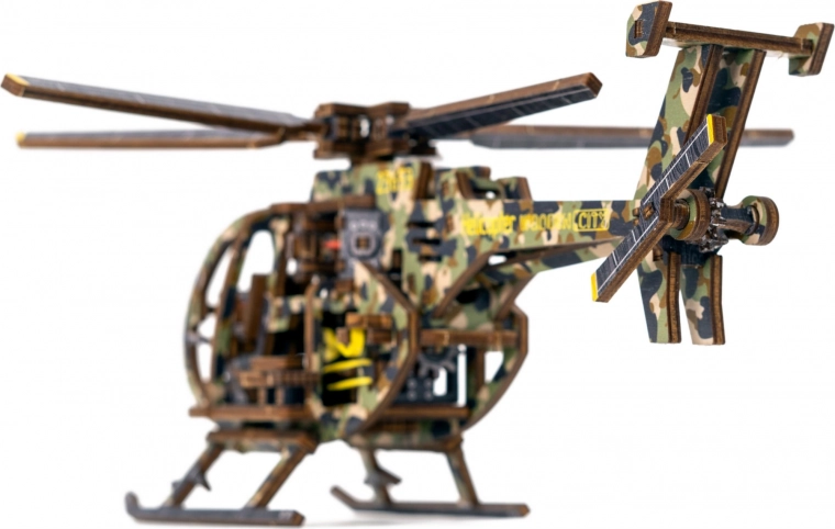 Ein hölzerner mechanischer Bausatz eines Militärhubschraubers wartet auf Sie! Dank des einzigartigen Designs und der überraschenden Details dieses Modells wird Ihre Freizeit voller Spaß und großartiger Emotionen sein. Eigenschaften des Modells: - markante Farbelemente dank hochpräzisem UV-Druck, - die Holzbox dient als Sockel, - Sammleredition. Das 3D-Puzzle WOODEN CITY Helicopter ist das beste Geschenk für jeden Luftfahrtliebhaber.