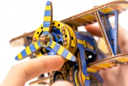 Das Modell besteht aus hochwertigem Birken-Sperrholz und wird ohne Klebstoff montiert. Es ist ein ideales Geschenk für Liebhaber der Luftfahrt und mechanischer Bausätze – es bietet etwa 3 Stunden sorgfältiges Tüfteln und Freude am funktionalen Ergebnis.