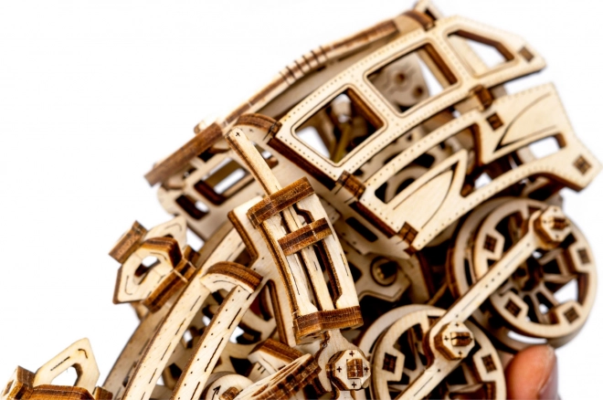 Der Holzbausatz Traum-Express ist das ideale Geschenk für Eisenbahnfreunde und Liebhaber mechanischer Knobeleien. Dieses 3D-Puzzle wurde entwickelt, um stundenlangen Spaß und ein Verständnis für Mechanik zu vermitteln. Das Modell wird ohne Klebstoff oder Werkzeug zusammengebaut und besteht aus umweltfreundlichen Materialien, konkret aus hochwertigem Birken-Sperrholz. Nach dem Zusammenbau können Sie seine mechanischen Funktionen voll genießen, die von einem Gummimotor angetrieben werden.