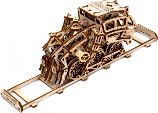 Der Traum-Express ist ein detailreich ausgearbeitetes Modell mit mechanischen Elementen, das sich mit einem Gummimotor bewegen lässt.