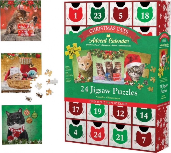 - 24 Mini-Puzzles mit Weihnachtskatzen-Motiven