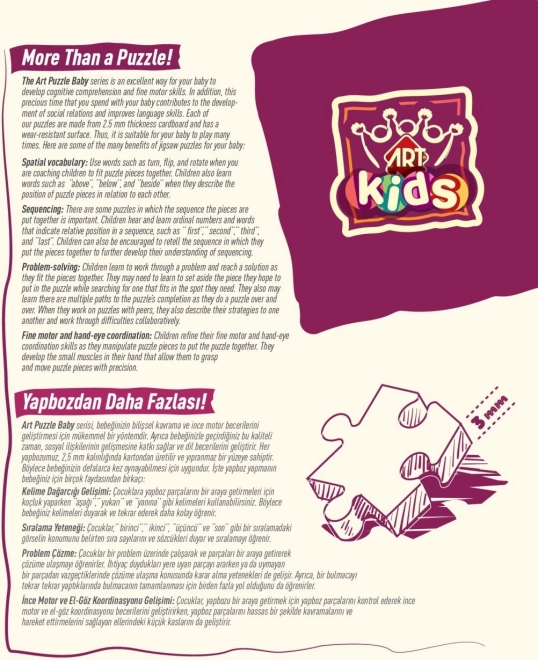 Entdecken Sie die unterhaltsame und lehrreiche Welt mit Art Kids Baby Puzzle Tiere! Diese Puzzles bieten nicht nur Spaß, sondern unterstützen auch die Entwicklung wichtiger Fähigkeiten bei Kindern: